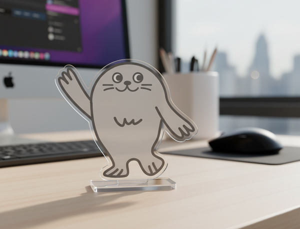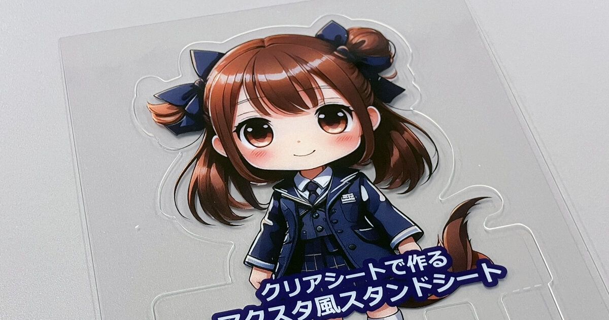 素材のアクリルは軽くて割れにくく、ガラスに近い透明感が特徴で、卓上での見栄えが良くなります。ダイカット加工(輪郭カット)によって、キャラクターなどの形やシルエットに沿って自由な形状に仕上げられる点が強みです。