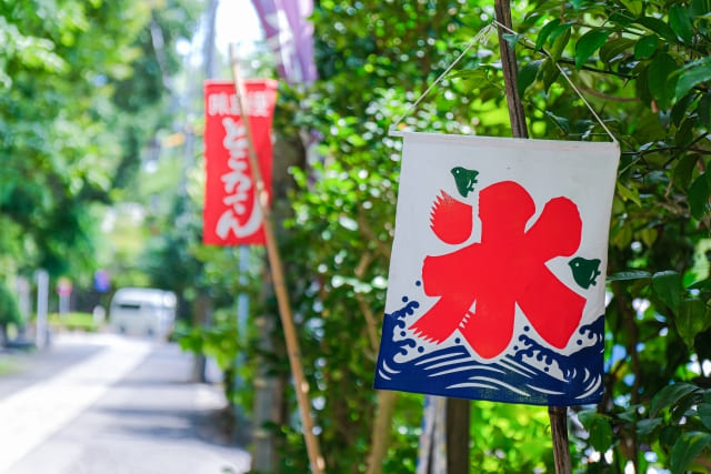 タペストリーには、店舗で販売する商品やサービスの魅力をわかりやすく伝える用途があります。