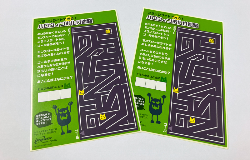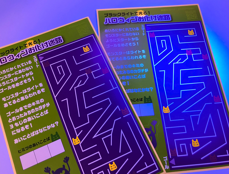 ブラックライトで光る特殊印刷は差別化に繋がり、強く印象に残ります。