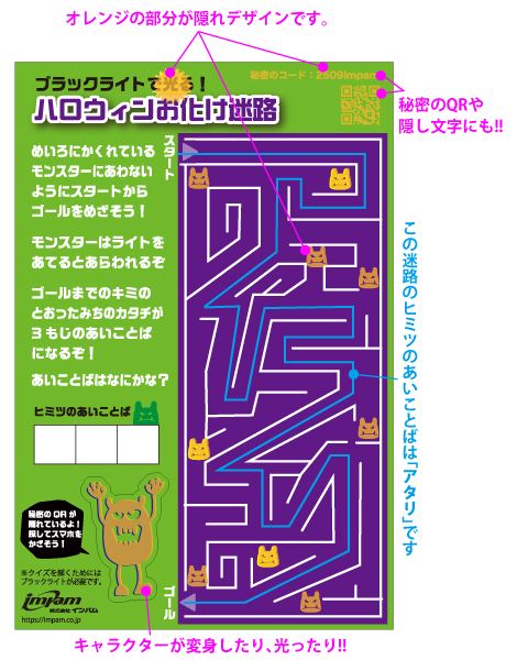 ・迷路:迷路内の秘密のヒントがないと解けない仕組みです。