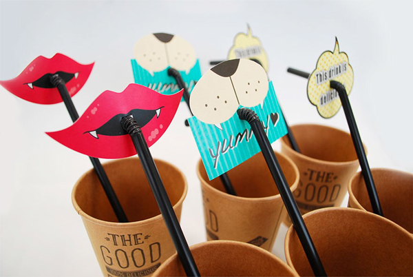 手軽な紙製で作るオリジナルデザインのストローピックです。キャラクターやロゴマークなど自由なデザインで作成できます。