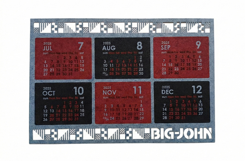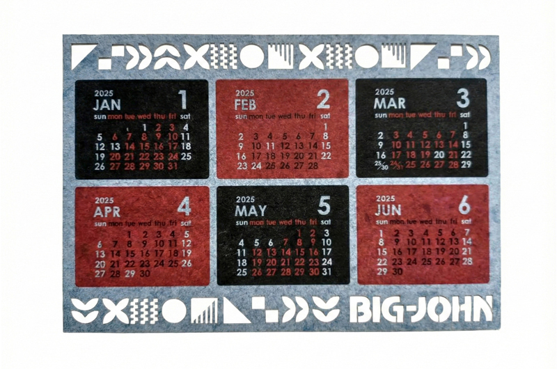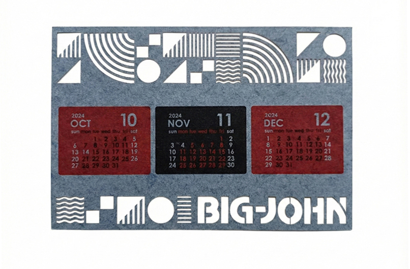デニムの端材を再利用した「デニム混抄紙」を使用したポストカードサイズのカレンダーを提案。さらに、インパムのレーザーカット技術を駆使し、紙とは思えない精密な加工を施しました。